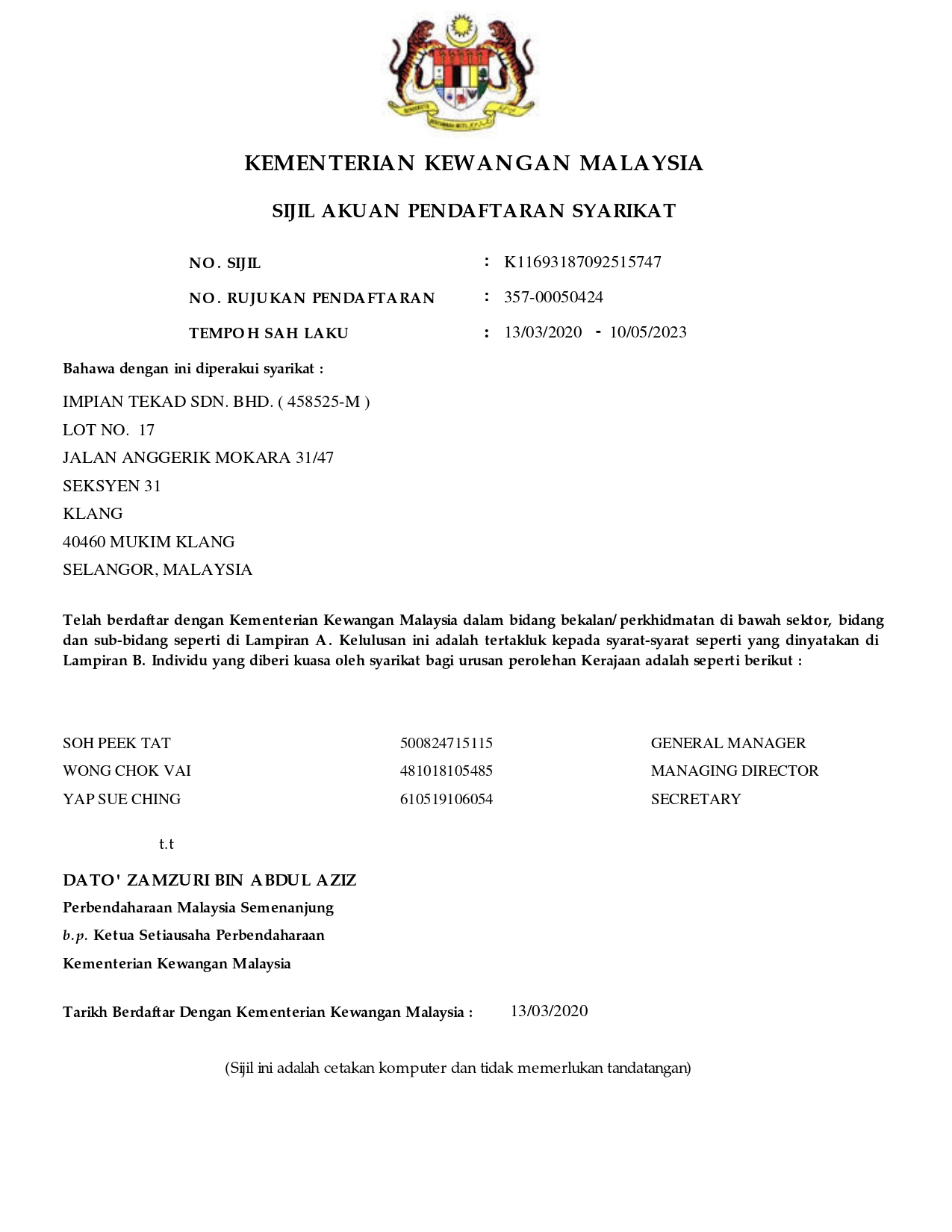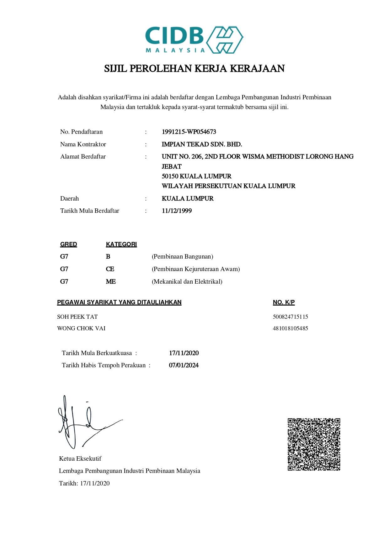 Key Personnel Particulars